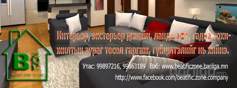 Интерьер, экстерьер дизайн, ландшафт, гадна тохижилтын зураг төсөл гаргаж, гүйцэтгэлийг нь хийнэ